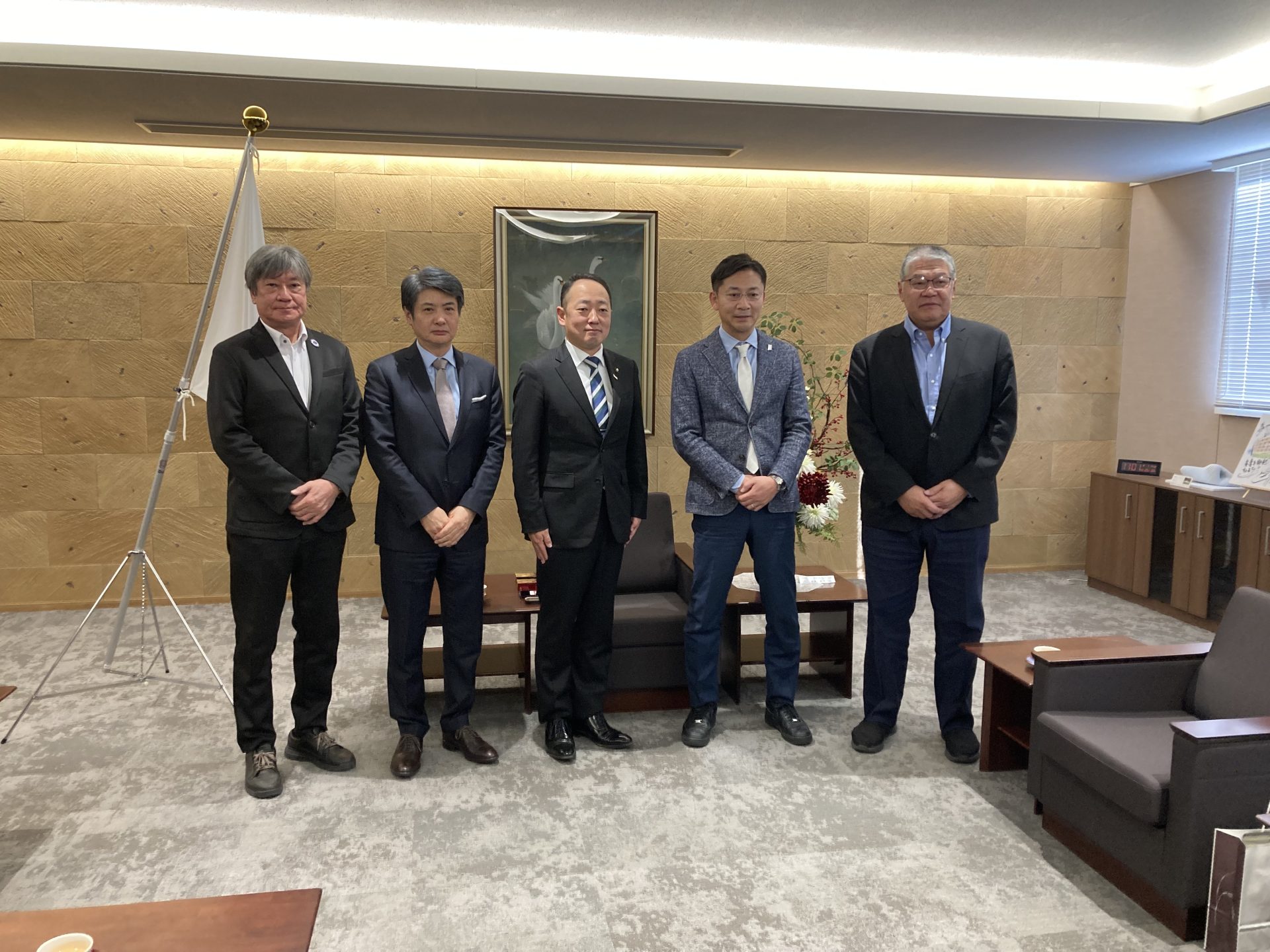 当日は午前中、当社代表取締役社長・福重ならびに山口プロバスケットボール株式会社 代表取締役社長・成田氏とともに宇部市役所を訪問し、宇部市長への表敬訪問を実施しました。会談では、山口パッツファイブの運営をテーマに、県内各市との連携体制の構築や、幅広い世代を巻き込んだ地域一体型の取り組みについて、活発な意見交換が行われました。